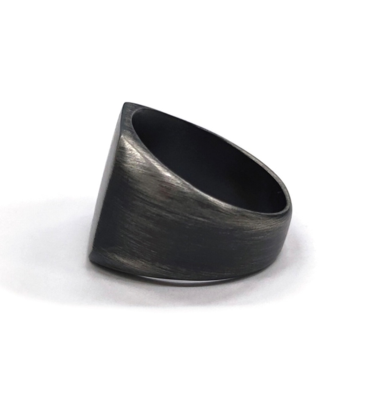 シンプルでソリッドな面構成が美しいシグネットリングデザイン。