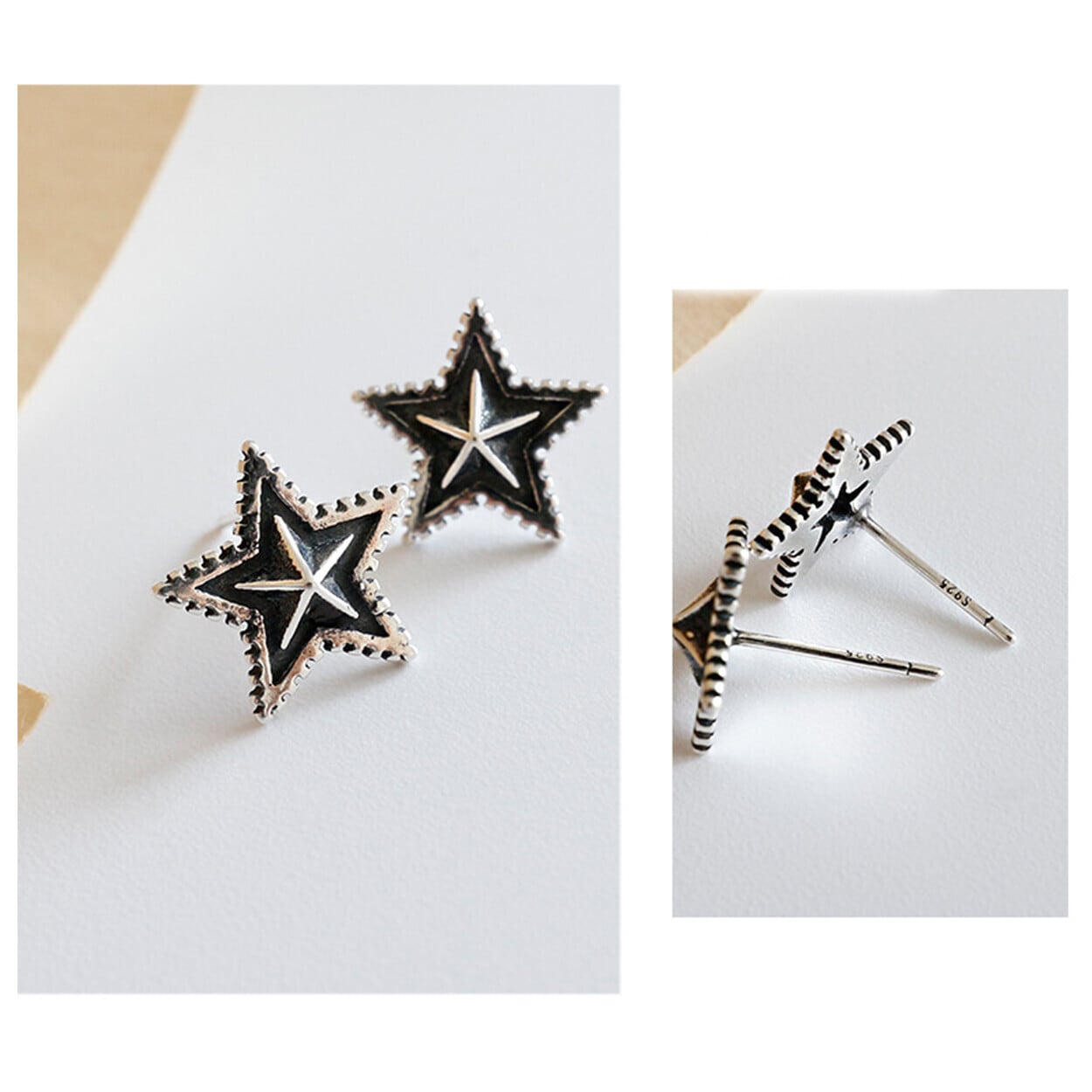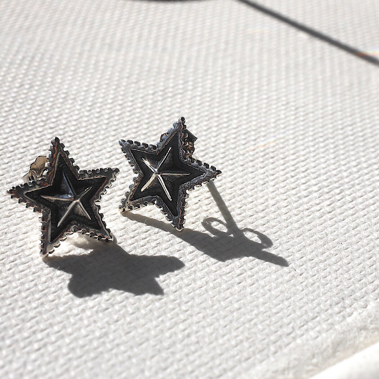 オールドスクールスタイルで、渋い燻し加工が特徴的なスターモチーフのピアス。