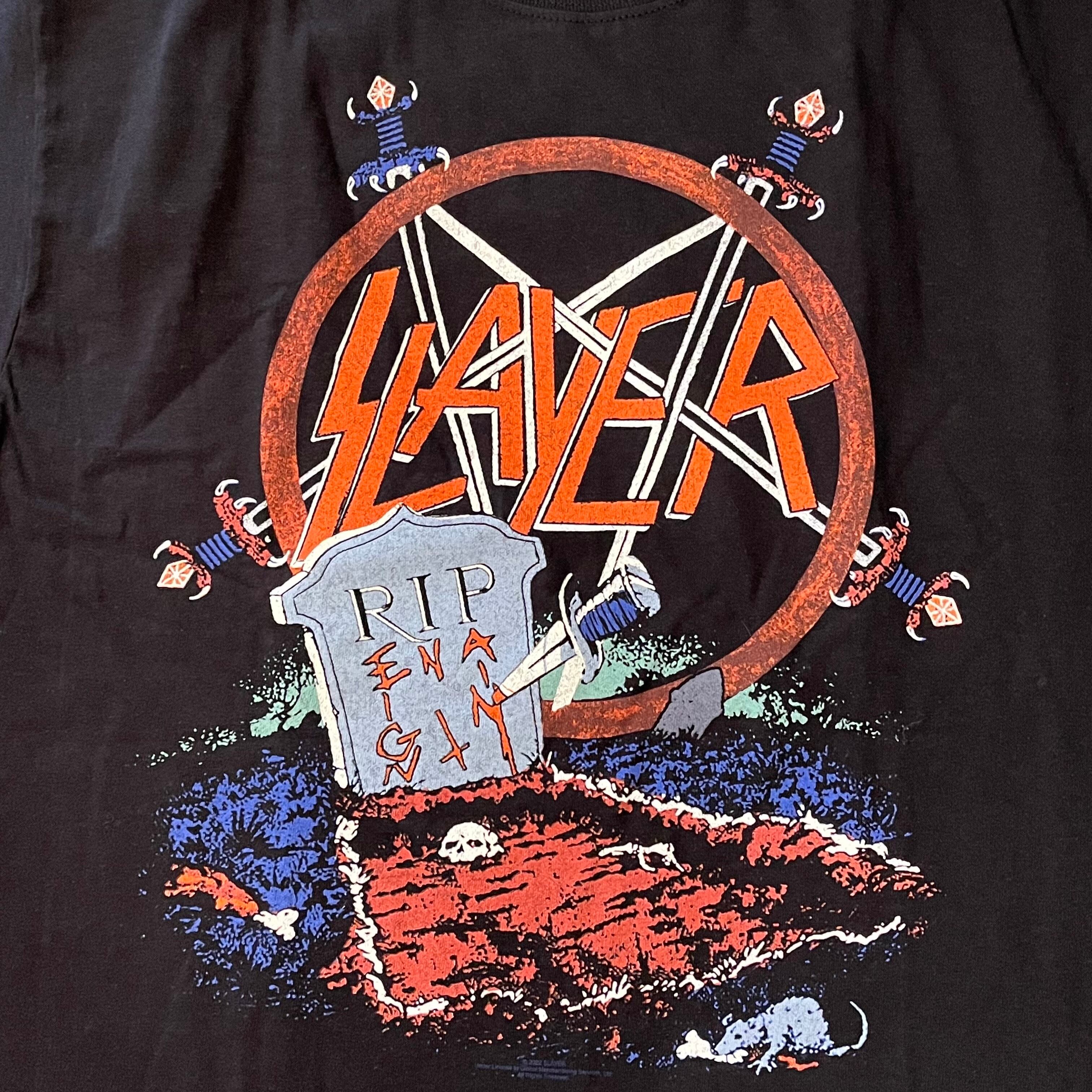 SLAYERのツアーモチーフがプリントされたTシャツです。