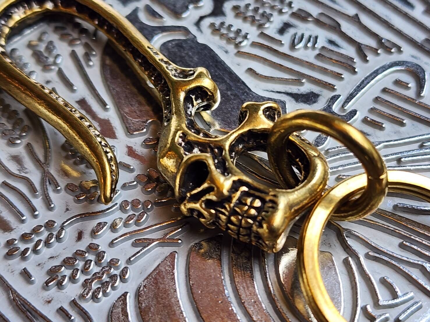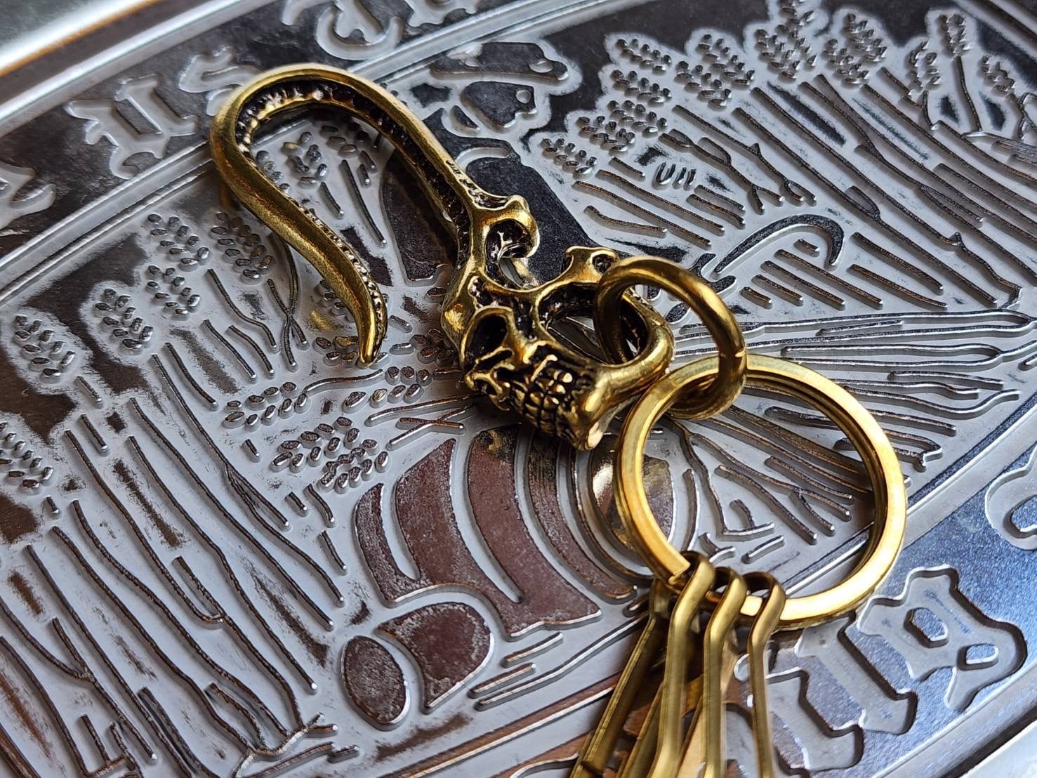 【E061】スカルモチーフブラスキーホルダー 真鍮製