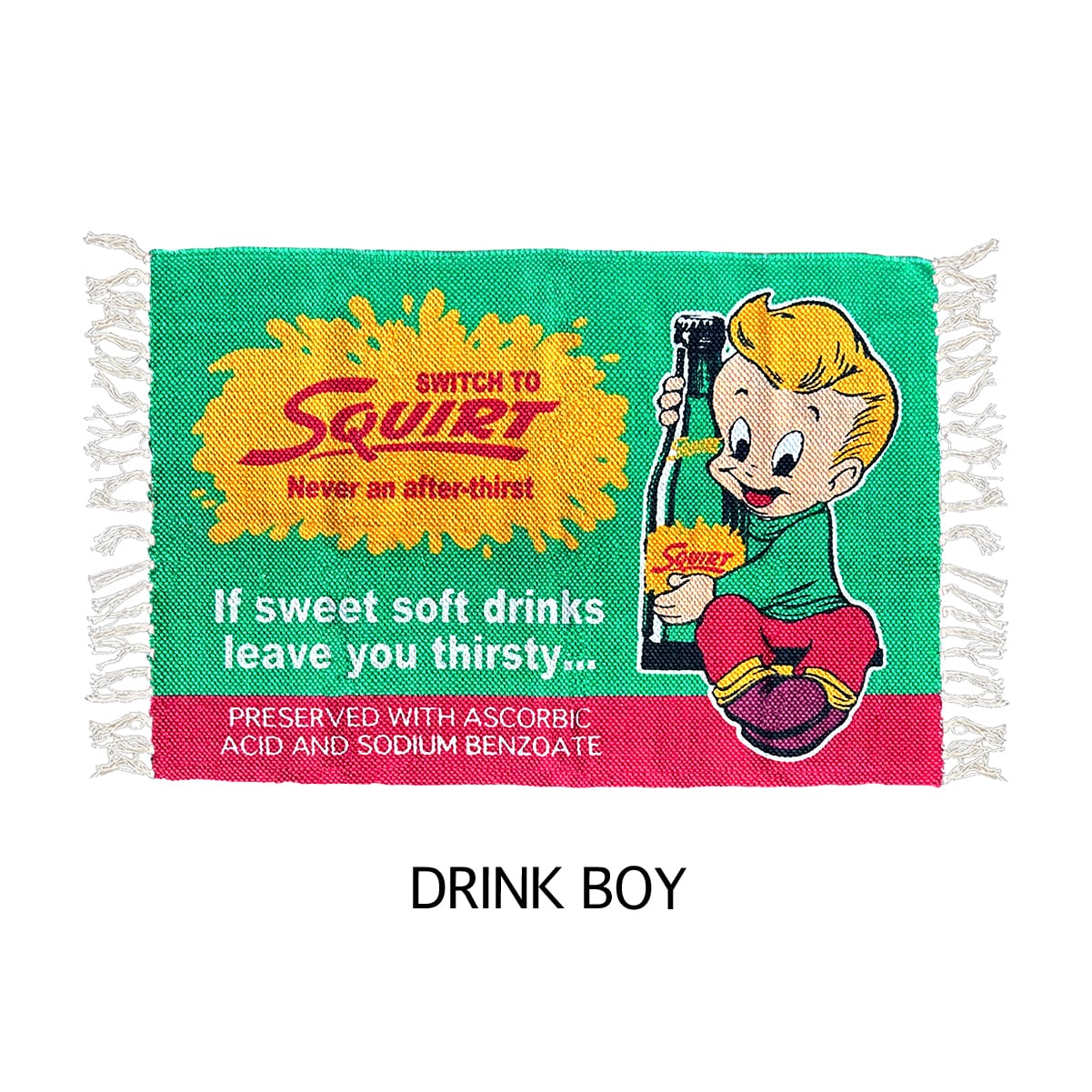 アメリカンな企業広告をモチーフにしたコットンマットです。