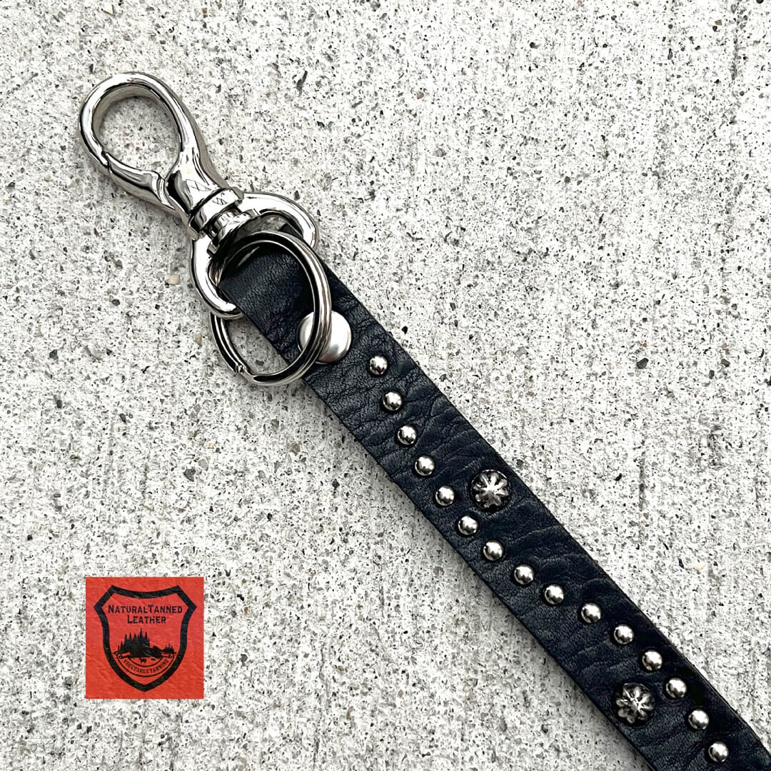 栃木レザーのストラップに アメリカ製 の スタッズ を手作業で一発ずつスタッズカスタムを施したスタッズキーホルダー。