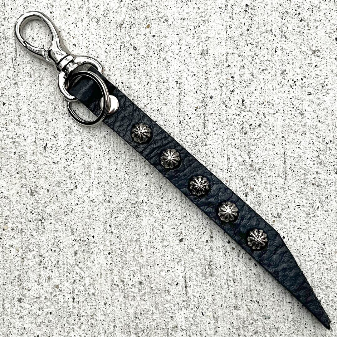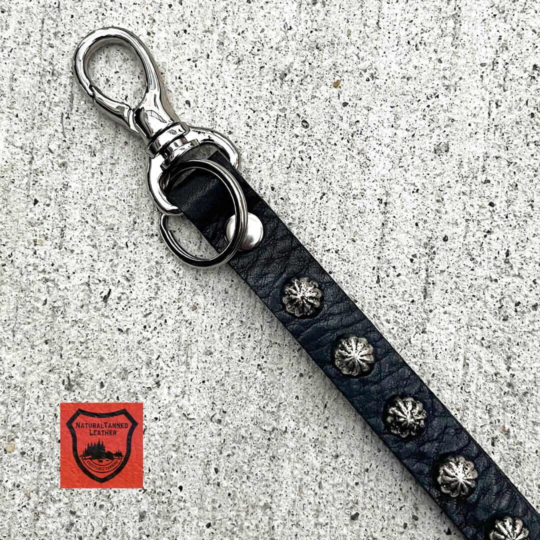 栃木レザーのストラップに アメリカ製 の スタッズ を手作業で一発ずつスタッズカスタムを施したスタッズキーホルダー。