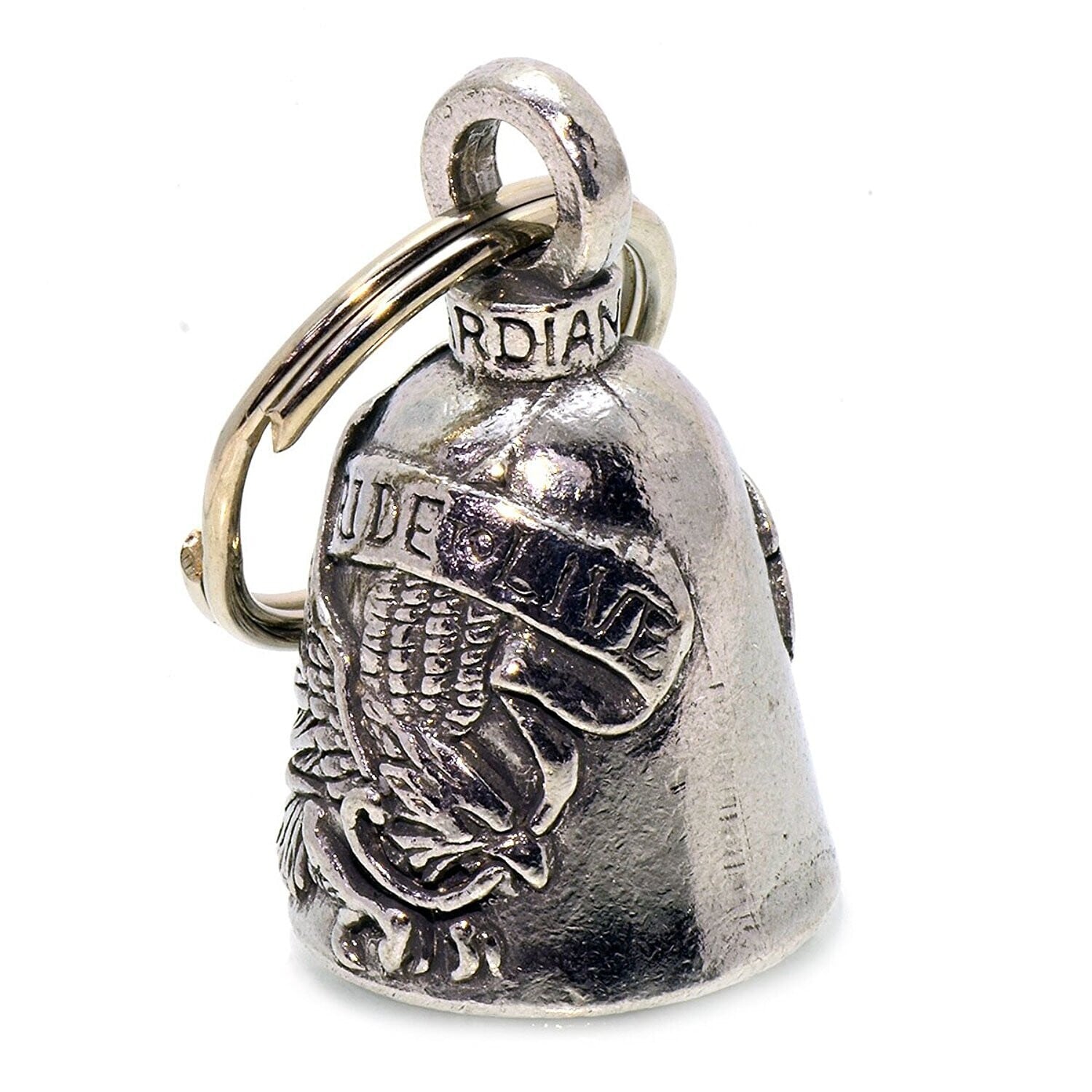 【MADE IN USA アメリカ製】交通安全、魔除けの御守り、ガーディアンベル!アメリカのライダーの間には、事故の原因は「道路にひそむ悪魔」のいたずらだと言われ、美しい音色で悪魔たちを追い払う御守りとなるのが、守護者のベルという意味を持つガーディアンベル。日本でも鈴の音(ね)は神道では魔除けの音と言われています。ピューター製の鈴はいい音色でデザインも多彩にあります。バイカー以外にもキーホルダー感覚のお守りとしてお使いいただけます。タイラップ等でバイクのフレームにも簡単に取り付けできます。アメリカンバイカーだけではなく、ライダーやドライバーにピッタリな御守りとなっています。