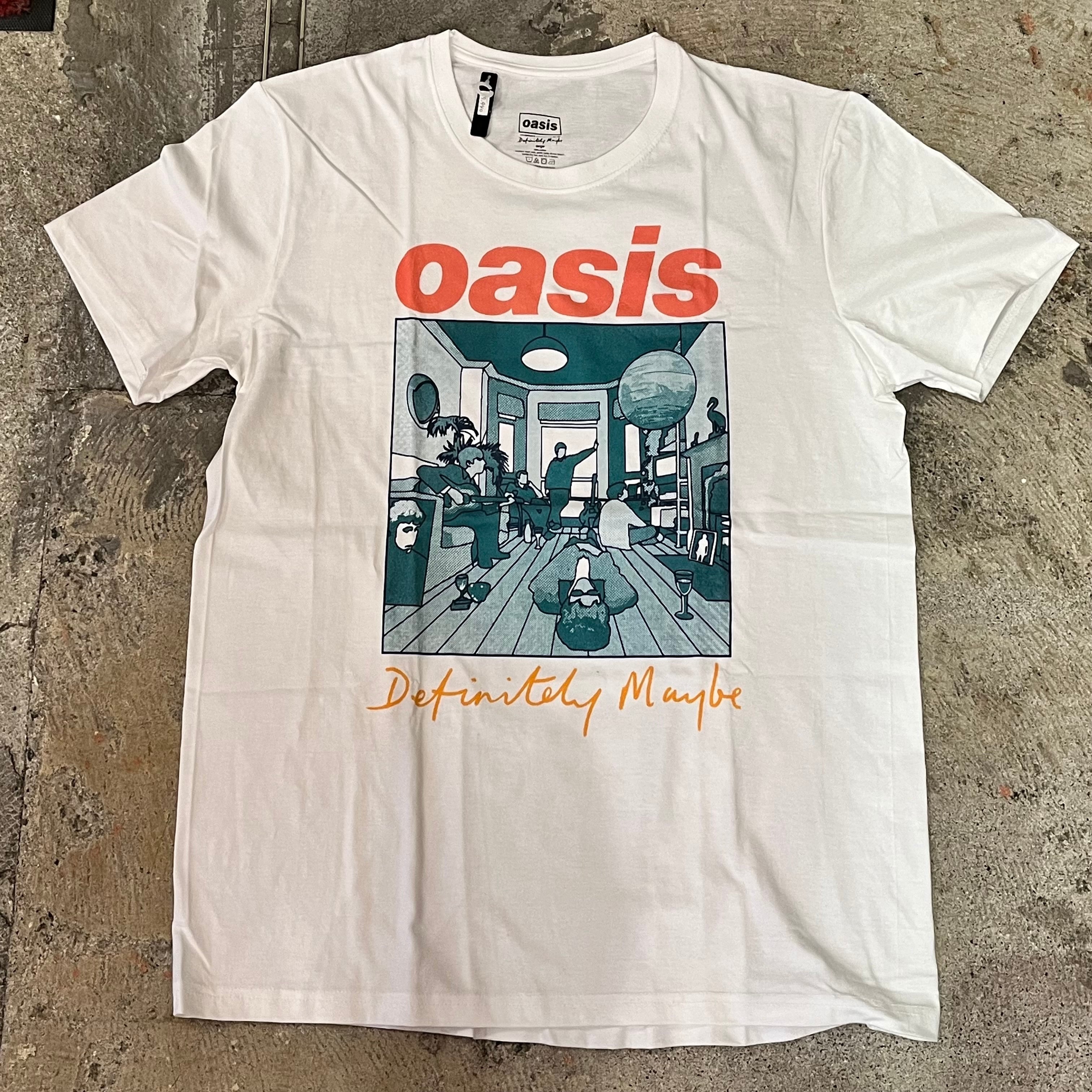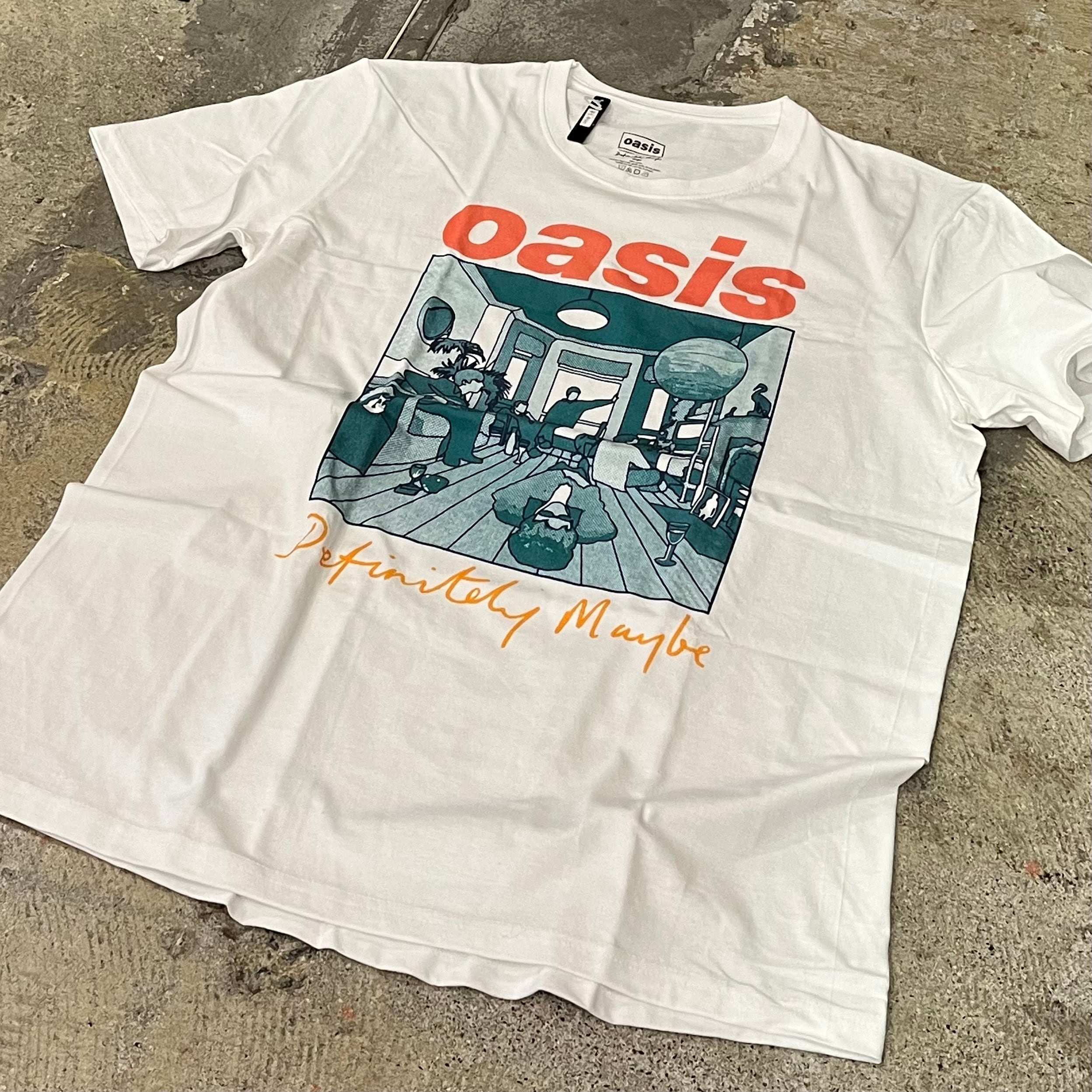 OasisのDefinitely MaybeのデザインがプリントされたTシャツです。
