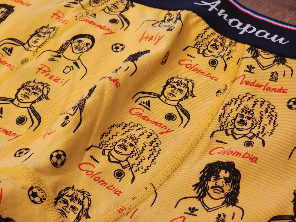 クセの強いサッカー界のレジェンド風の手描きパターンです。