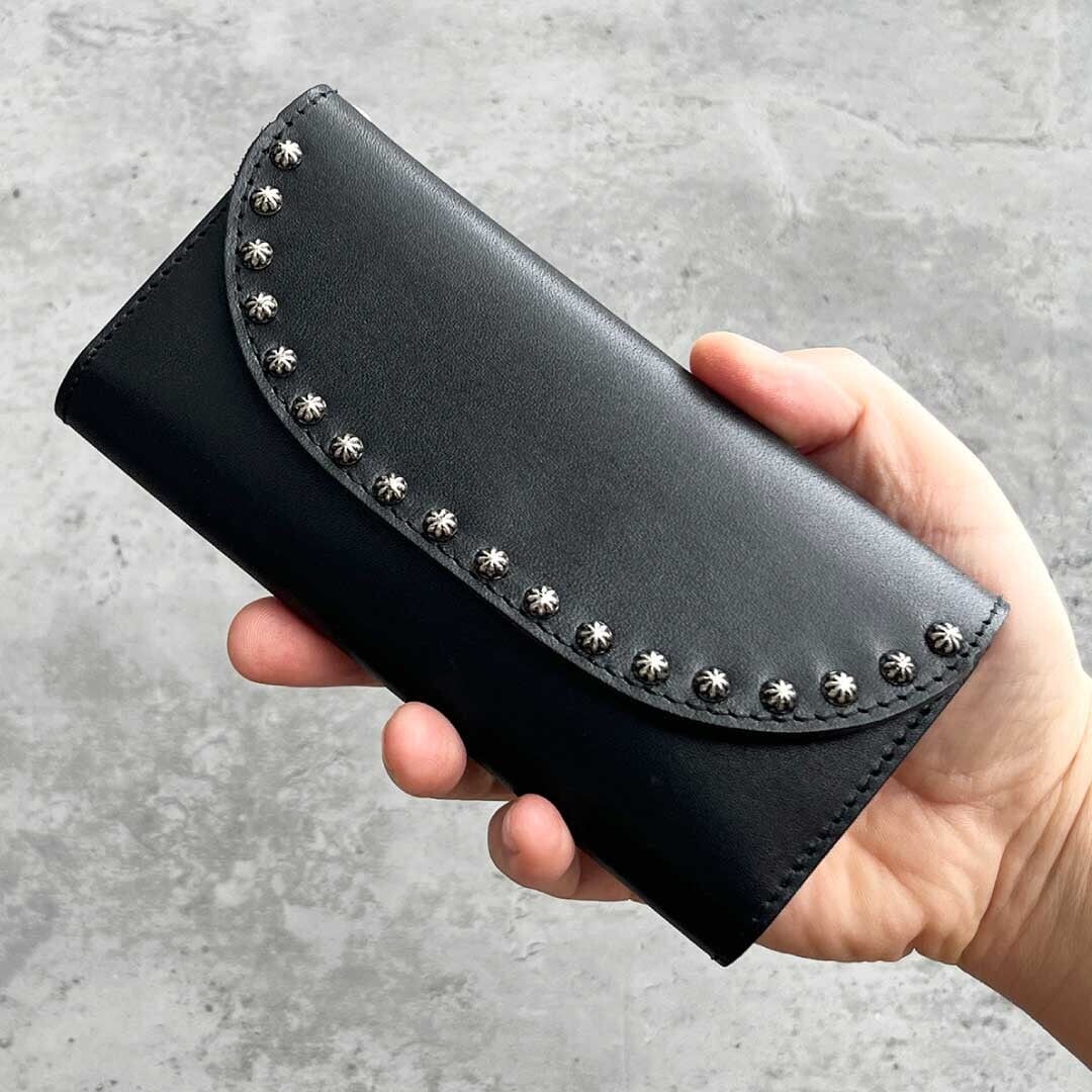 【J023】LEATHER STUDS LONG WALLET 栃木レザー スタッズ ロング ウォレット 長財布