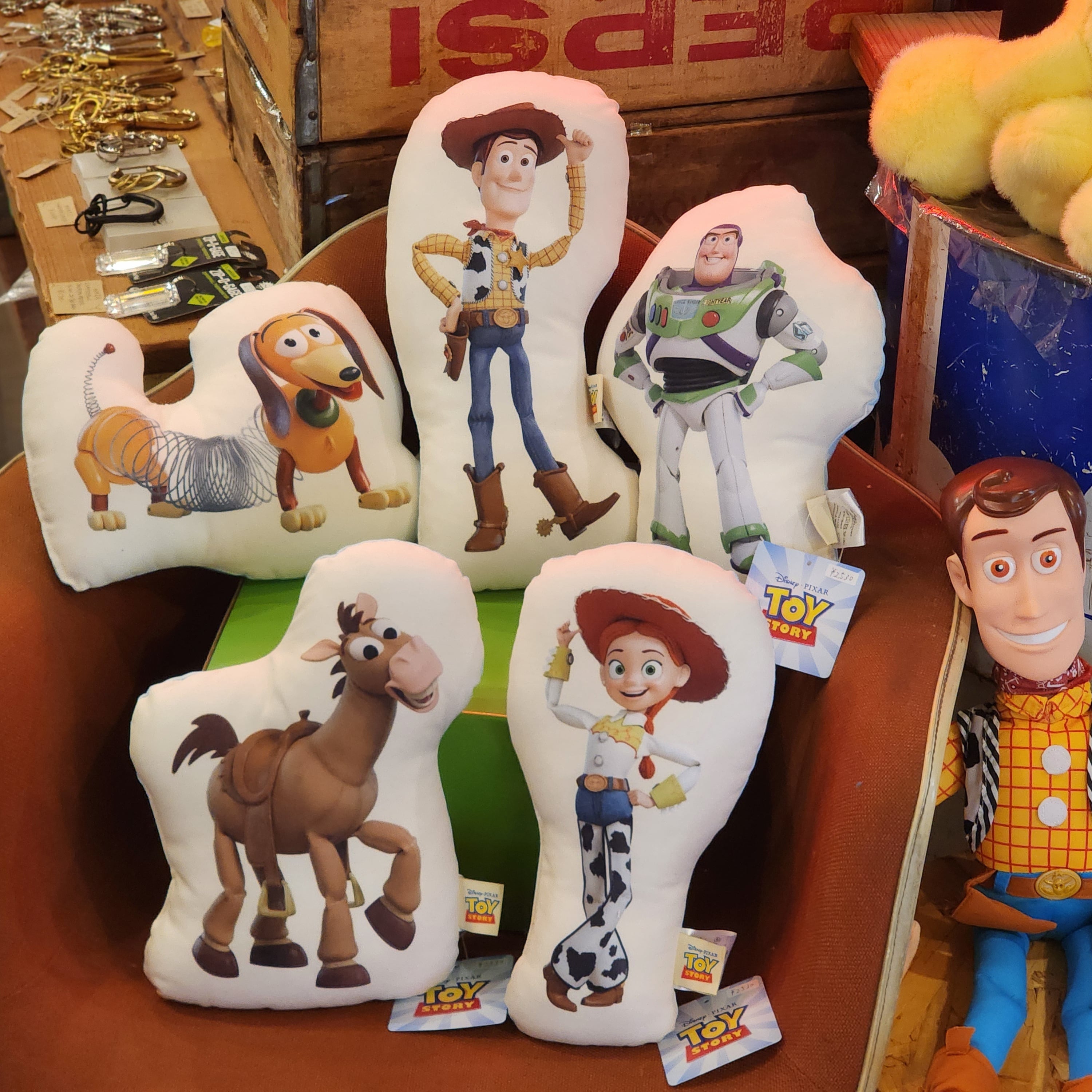 トイストーリーの仲間たちが可愛いクッションになってます。