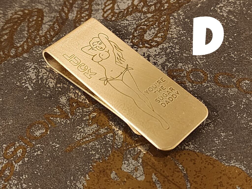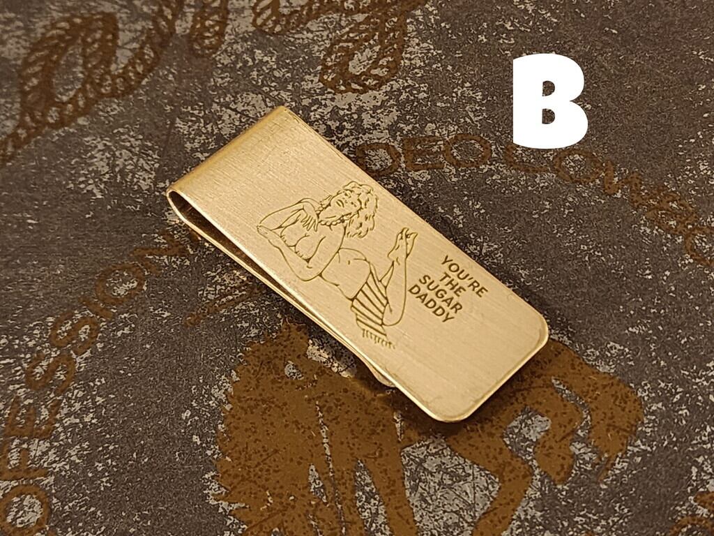 ビンテージ感漂うブラス(真鍮製)のマネークリップです。レトロ感漂うヌードピンアップの柄が入っております。使い込むほどにアジが出る。古き良きアメリカを彷彿とさせるタフな相棒。どこか無骨で、温かみのあるアメリカンヴィンテージなデザイン。堅牢な素材と確かなホールド感はラフな日常使いにも最適です。ジーンズのバックポケットから無造作に取り出し、お札でスマートに支払う・・・。そんな古き良きアメリカ映画のワンシーンを実現してくれます。使うたびに深まる風合いもお楽しみいただけます。