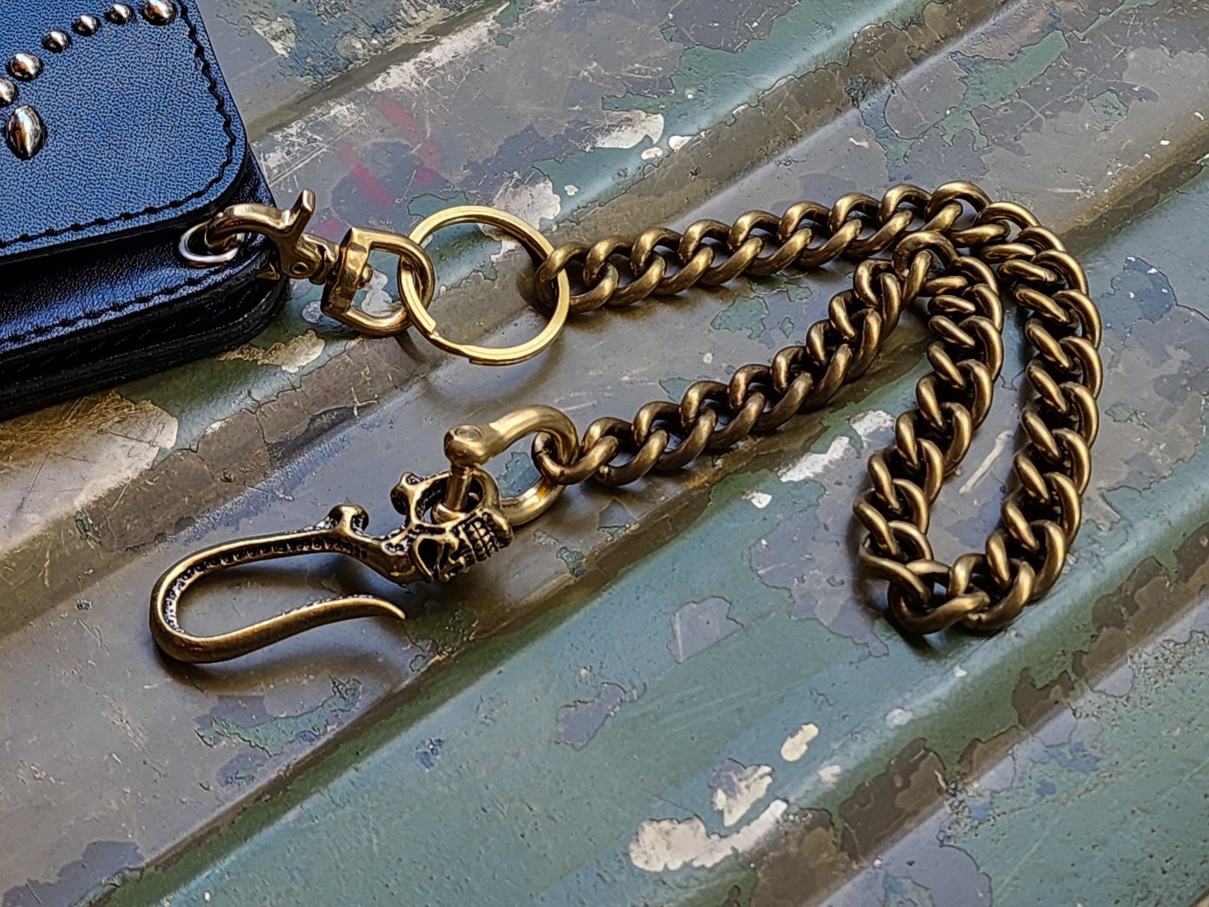 【G127】 BRASS WALLET CHAIN SKULL ブラス ウォレットチェーン スカル モチーフ ドクロ 髑髏 真鍮製 メンズ アメカジ バイカー