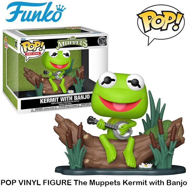 This charming figure captures Kermit sitting on a log with a banjo in hand, bringing a relaxed and heartwarming mood to the POP! Deluxe series.