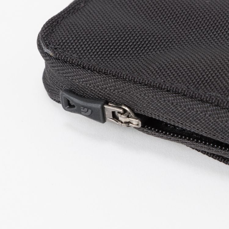 高強度の1050デニールリサイクルコーデュラバリスティックナイロンを使用したトラベルワレットです。内部収納は、カードスリットが3つと、コインや紙幣をいれておけるスペースでデザイン。ロック式ファスナーオープン式でセキュリティー性を向上しています。