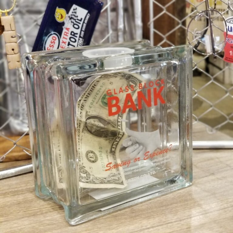 建材のガラスブロックを使った貯金箱