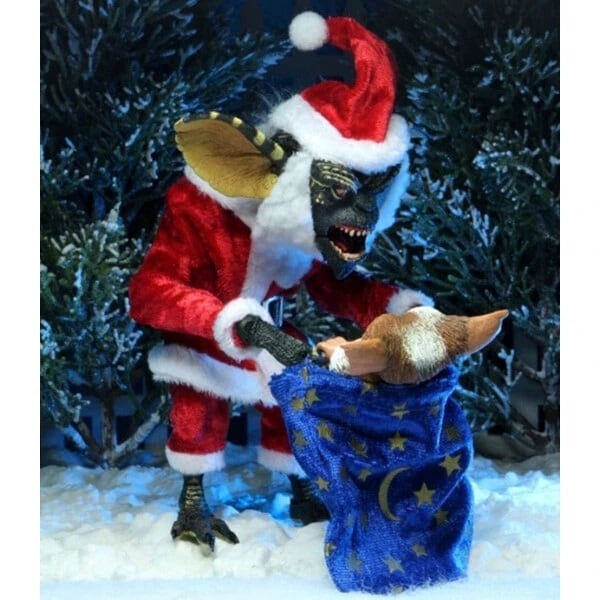 7 インチ スケール (高さ約 6 インチ) のこのフィギュアは、ストライプにはベルト・サンタ帽・ふわふわのひげを備えた布製のサンタの変装をしています。 布製のギフト袋に入れることができるギズモもアクセサリーで付属していますよ。