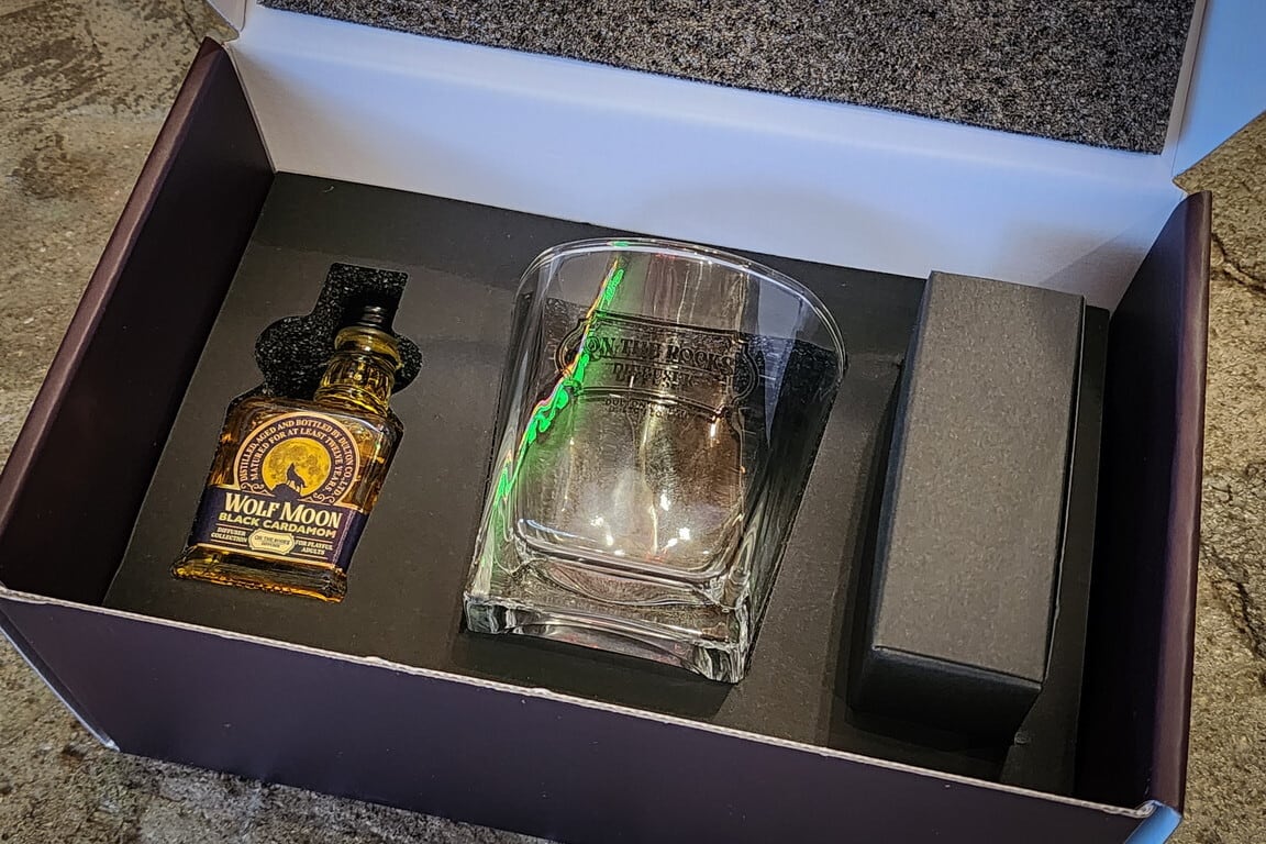 ボトルとグラスを並べて置けるコースターも付属していて、お部屋に置いた時もサマになります。 ギフトにぴったりな高級感のあるパッケージが付きます。
