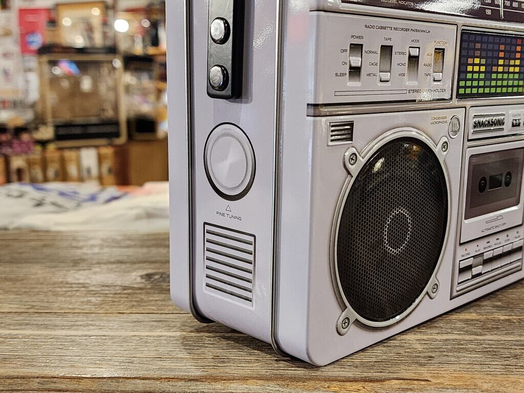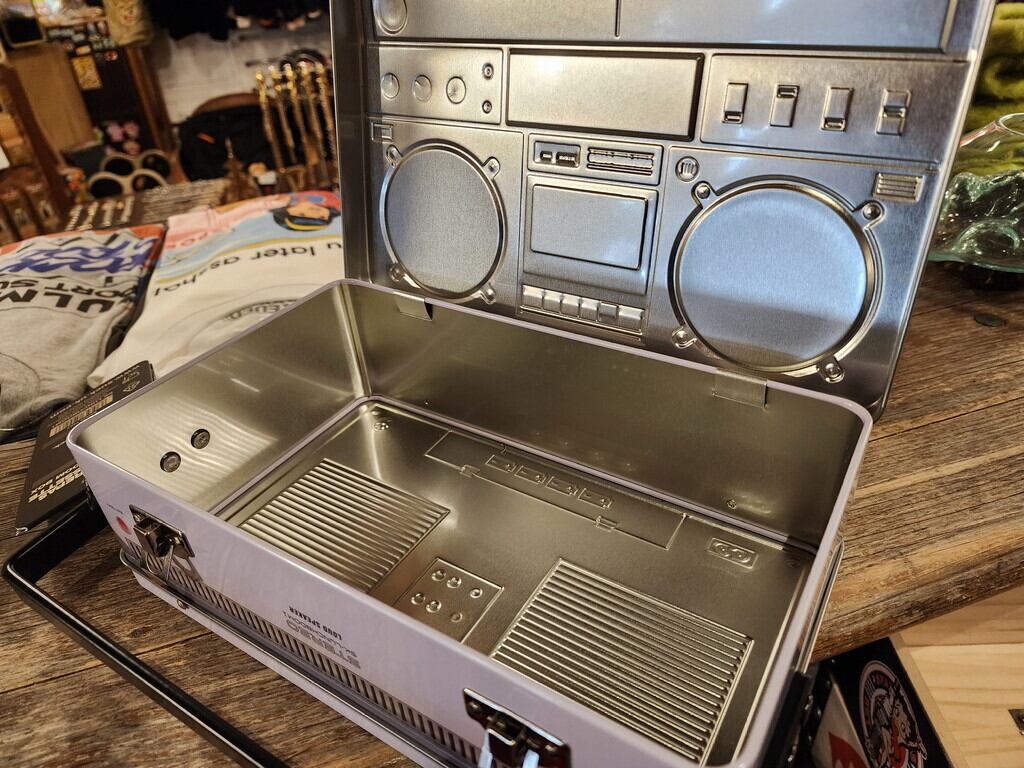 エンボス加工のボディとブームボックスらしい持ち手が付いたランチボックスはとってもCool!